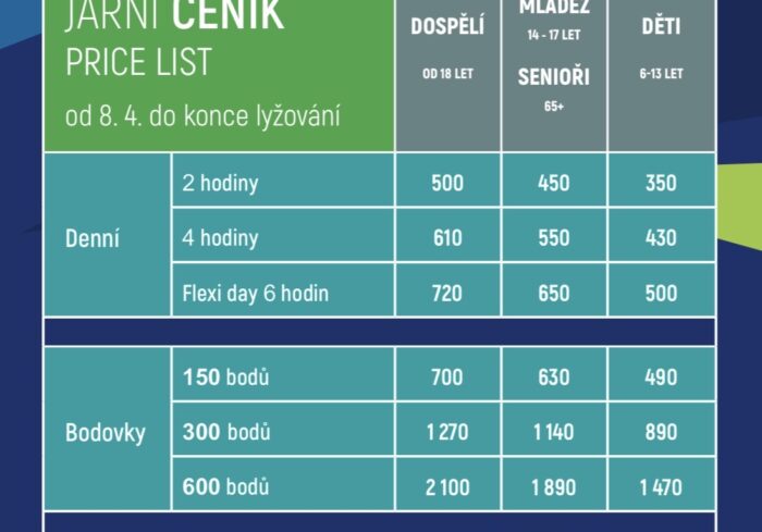 Ceny zahrnují parkovné, WIFI, spotřebu vody, elektřiny a plynu, povlečení, ručníky, použití sauny, závěrečný úklid a Harrachov Card (slevy na skipas až 20%, skibus zdarma a další slevy).